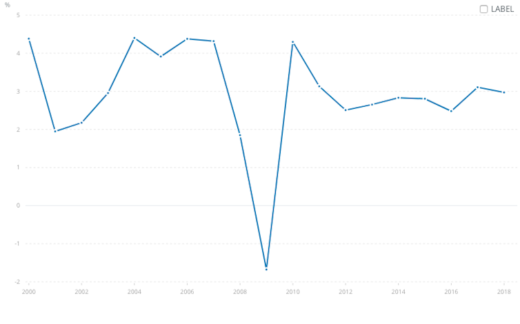 There has been much debate about whether QE has succeeded. It is often said that along with low interest rates, it has paved the way for a new speculative bubble in riskier assets, while not unlocking enough growth to have achieved a recovery. We have never returned to the growth levels of the 2000s, as shown below.