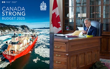 Rachel Samson is the vice president of research at the Institute for Research on Public Policy. This article was originally published by Policy Options and is reprinted under a Creative Commons/No Derivatives licence. Title image: Ottawa, Ontario, July 2, 2025 - Prime Minister Carney is in his office preparing for a meeting with chief executive officers of the automotive industry, photo: Lars Hagberg; and front cover of Budget 2025.